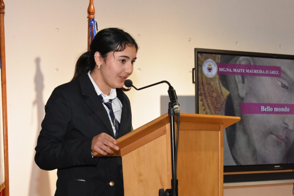 L’alunna Maite Maureira Juárez ha recitato con grande emozione il poema “Bello mondo o ringraziare desidero” della poetessa italiana Mariangela Gualtieri.