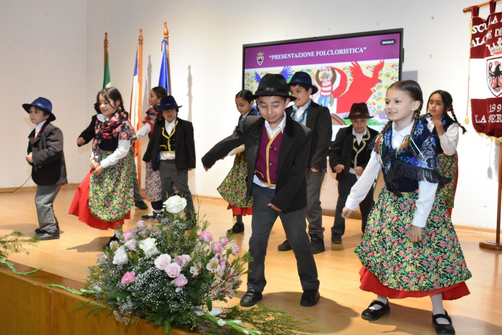 I bambini della scuola primaria hanno presentato un insieme di balli trentini in onore alla terra d’origine degli emigrati che fondarono la scuola, seguiti dal ballo nazionale cileno, la cueca, evocando l’arrivo al porto di Coquimbo degli emigrati settantaquattro anni fa.